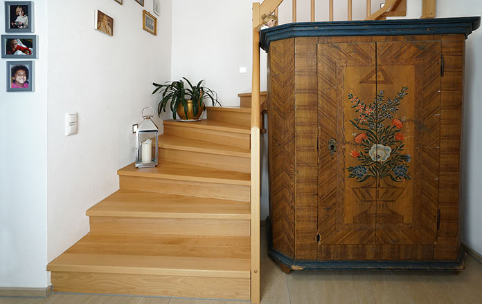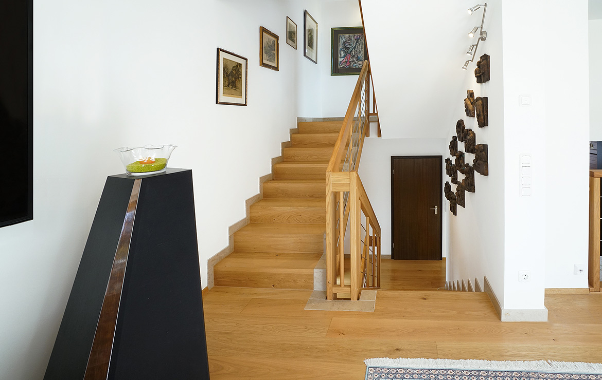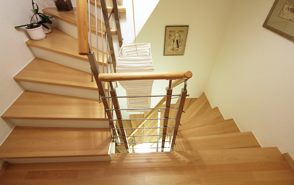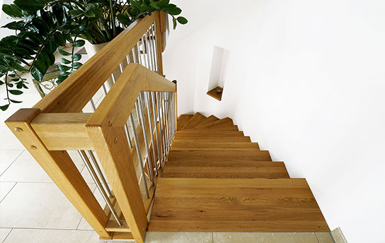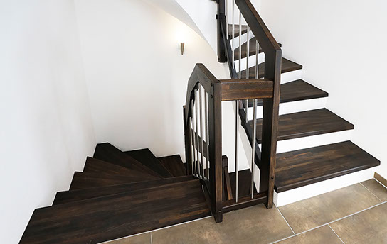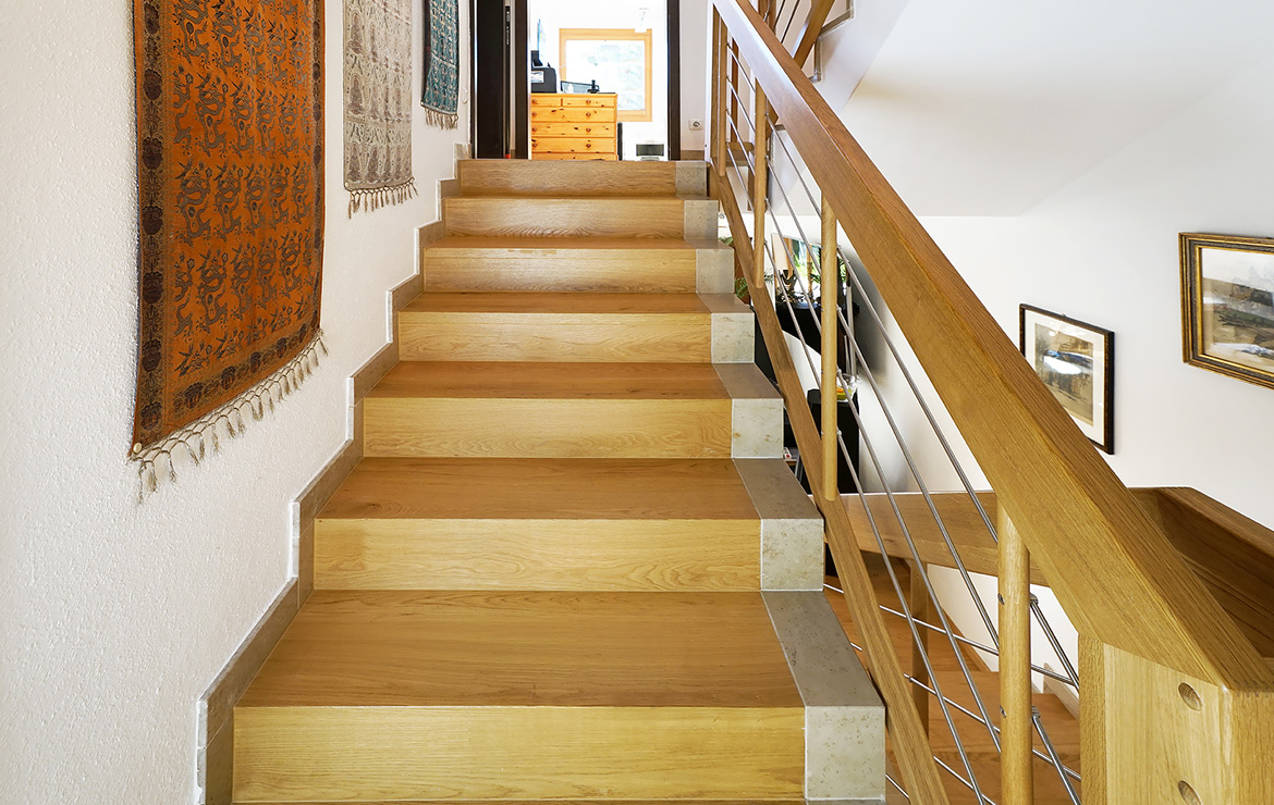 Mit Hartholz, wie z.B. Eiche, Buche oder Esche treffen Sie eine gute Wahl. Mit unserem Hartwachsöl ist die Stufe dann so geschützt, dass Sie lange Freude daran haben.