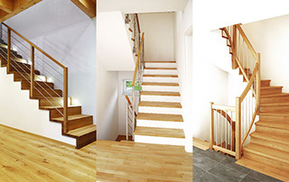 Eine große Menge unterschiedlichster Geländerformen und Materialien sind möglich. Die Holzarten können Sie auf unserer Seite auswählen. Weiter zu den Holzarten.
