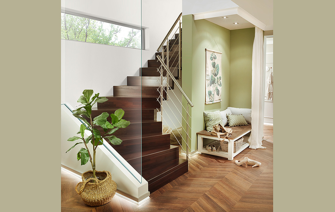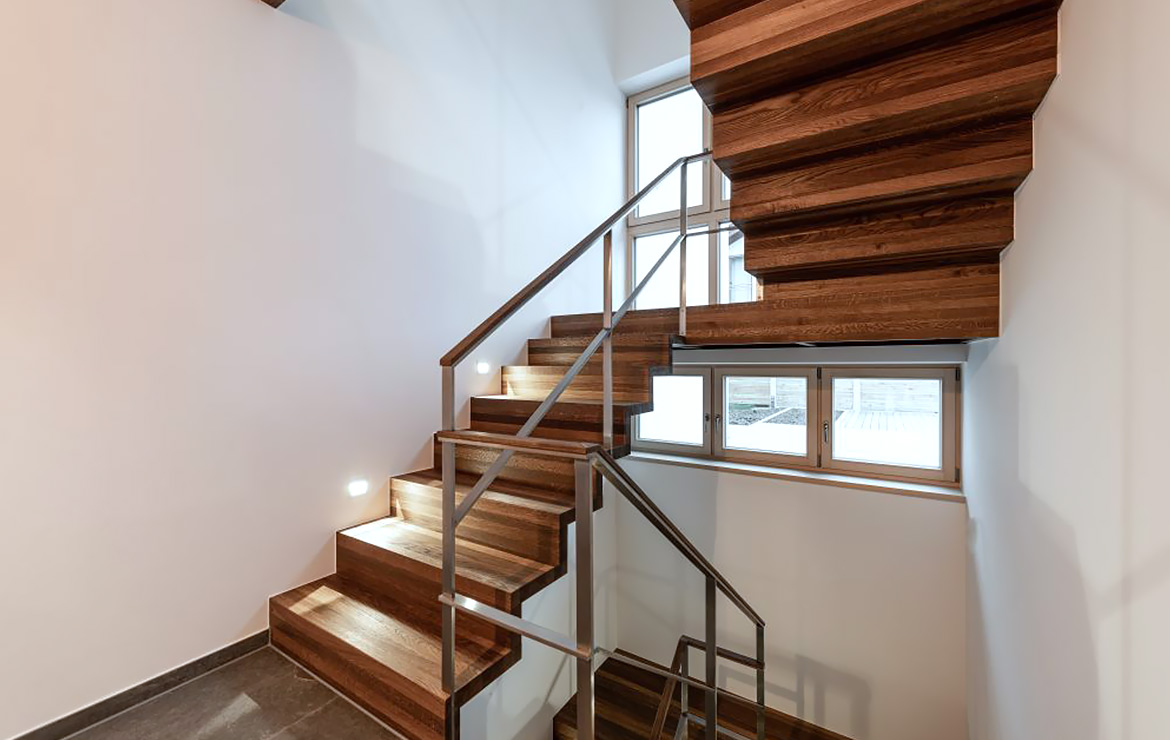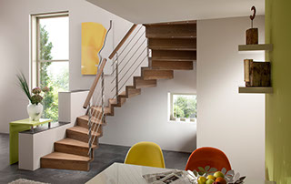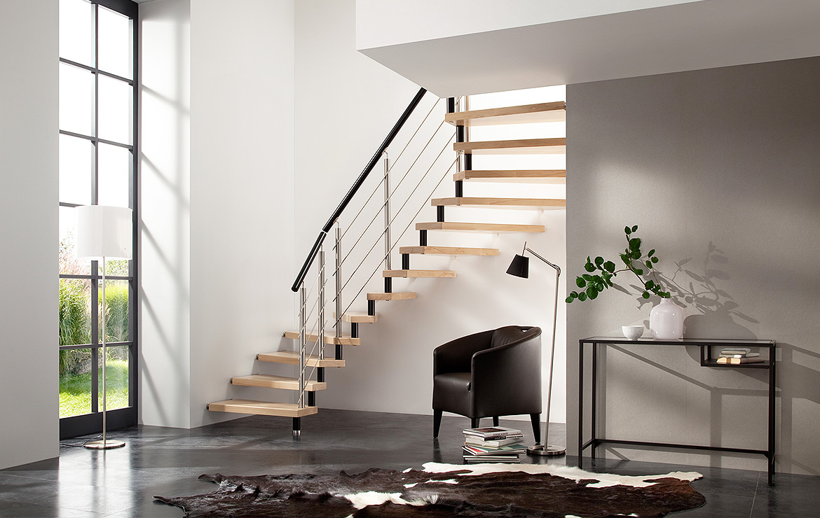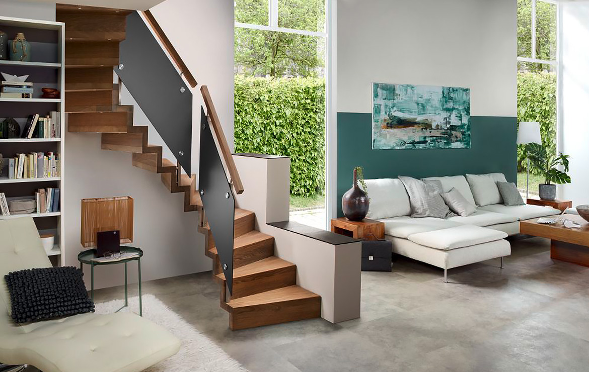 Mit der großen Auswahl an unterschiedlichen Geländervarianten gestalten Sie Ihre Bolero-Treppe ganz nach Ihren Wünschen. Auch bei wenig Raum für das Treppenhaus, ist die Bolzen-Treppe eine gute Wahl.