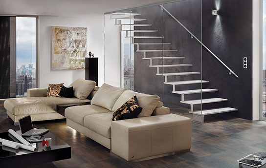 Die Bolzentreppe (Bolero) bietet eine große individuelle Gestaltungsfreiheit. Sie benötigt zur Stabilität kein Geländer (selbsttragende Treppe). Wenn Sie eine Treppe suchen, die optisch leicht wirkt, ist die Bolero-Serie die richtige Entscheidung. Bewährte Treppenbaukunst vereint sich mit modernen Konstruktionselementen.