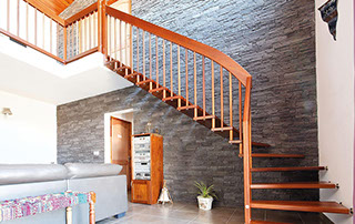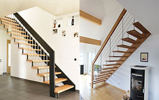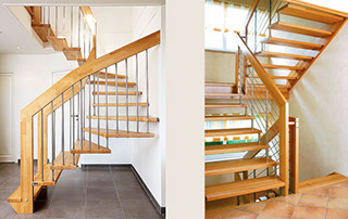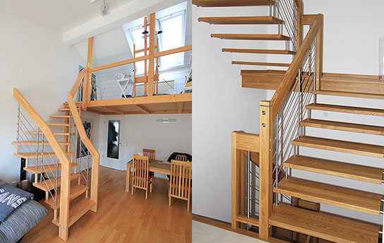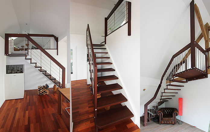 Eine große Menge unterschiedlichster Geländerformen und Materialien sind möglich. Die Holzarten können Sie auf unserer Seite auswählen. Weiter zu den Holzarten.